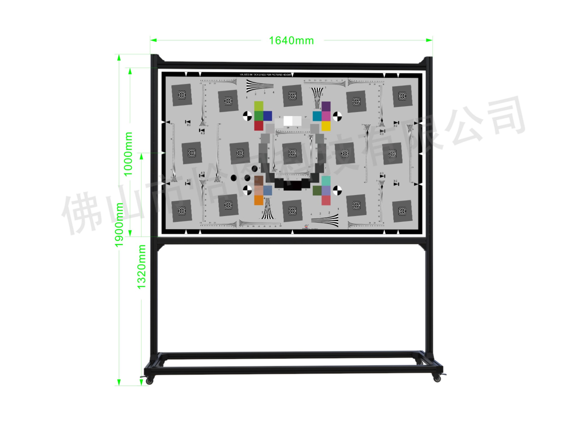簡介:恰圖成像評測專用掛架4倍chart圖卡掛架測試卡雙面支架接受定制,合適4倍或以下規(guī)格圖卡??蓡蚊嬉嗫呻p面;若要其他尺寸的掛架和圖卡,可聯(lián)系客服咨詢,謝謝。材質(zhì):鋁合金面板尺寸:1640*1000mm整體尺寸:1640*1900mm底座帶萬向輪和剎車,方便移動,使用便捷,鏡頭評測實驗室必備!詳情介紹:1、單雙面可選;2、選用好材料,穩(wěn)固可靠;3、全帶剎車萬向輪,挪動停止方便;4、全啞光不影響評