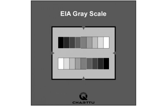 EIA灰度圖是一個(gè)標(biāo)準(zhǔn)的2“平方投影幻燈片,它包含兩個(gè)平行的灰階,上面有9個(gè)等距的傳輸步驟,下一個(gè)包含相同數(shù)量的名義等密度級(jí),透射率值在3%到60%之間,分別對(duì)應(yīng)于密度值1.52和0.22。
