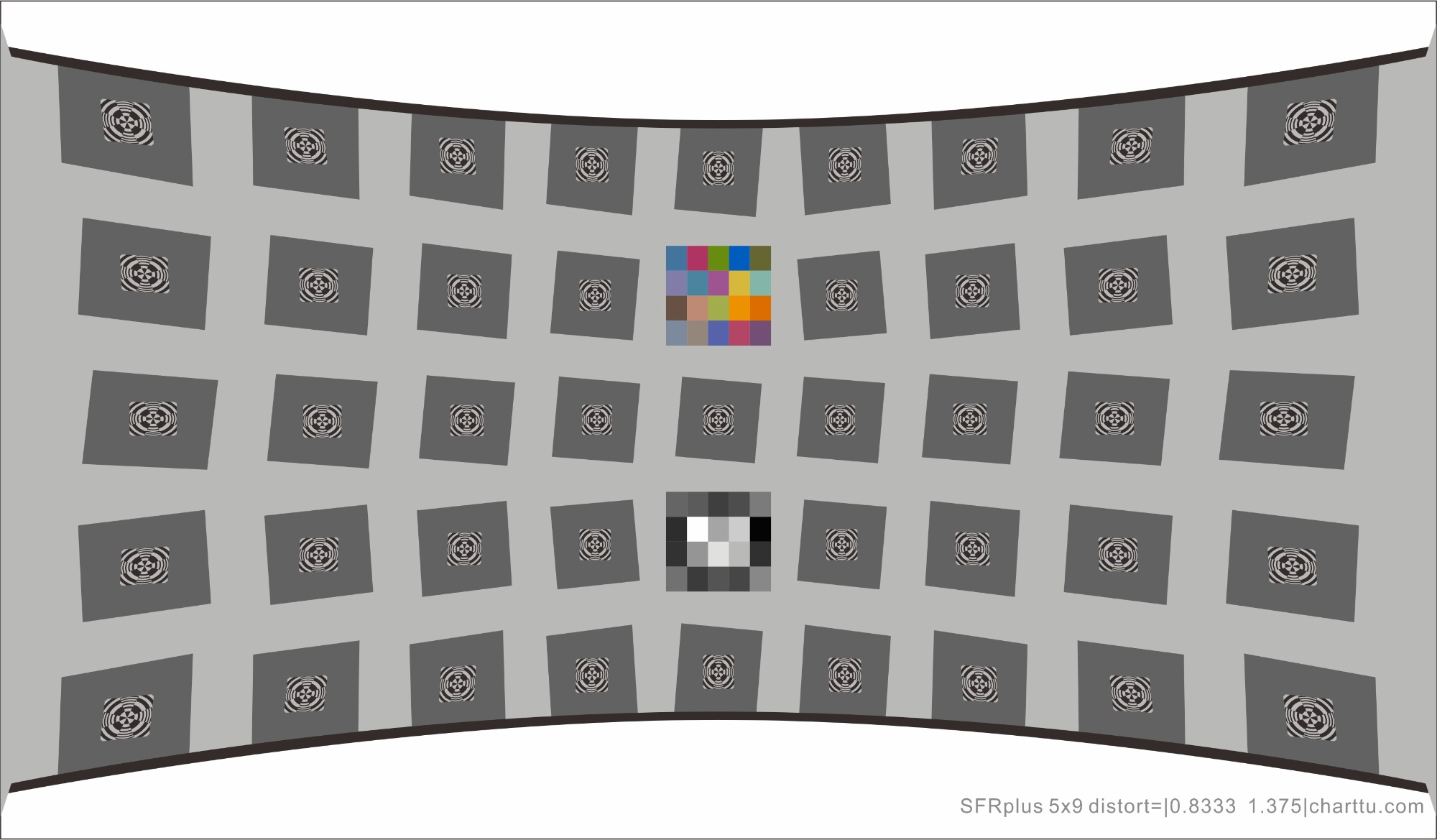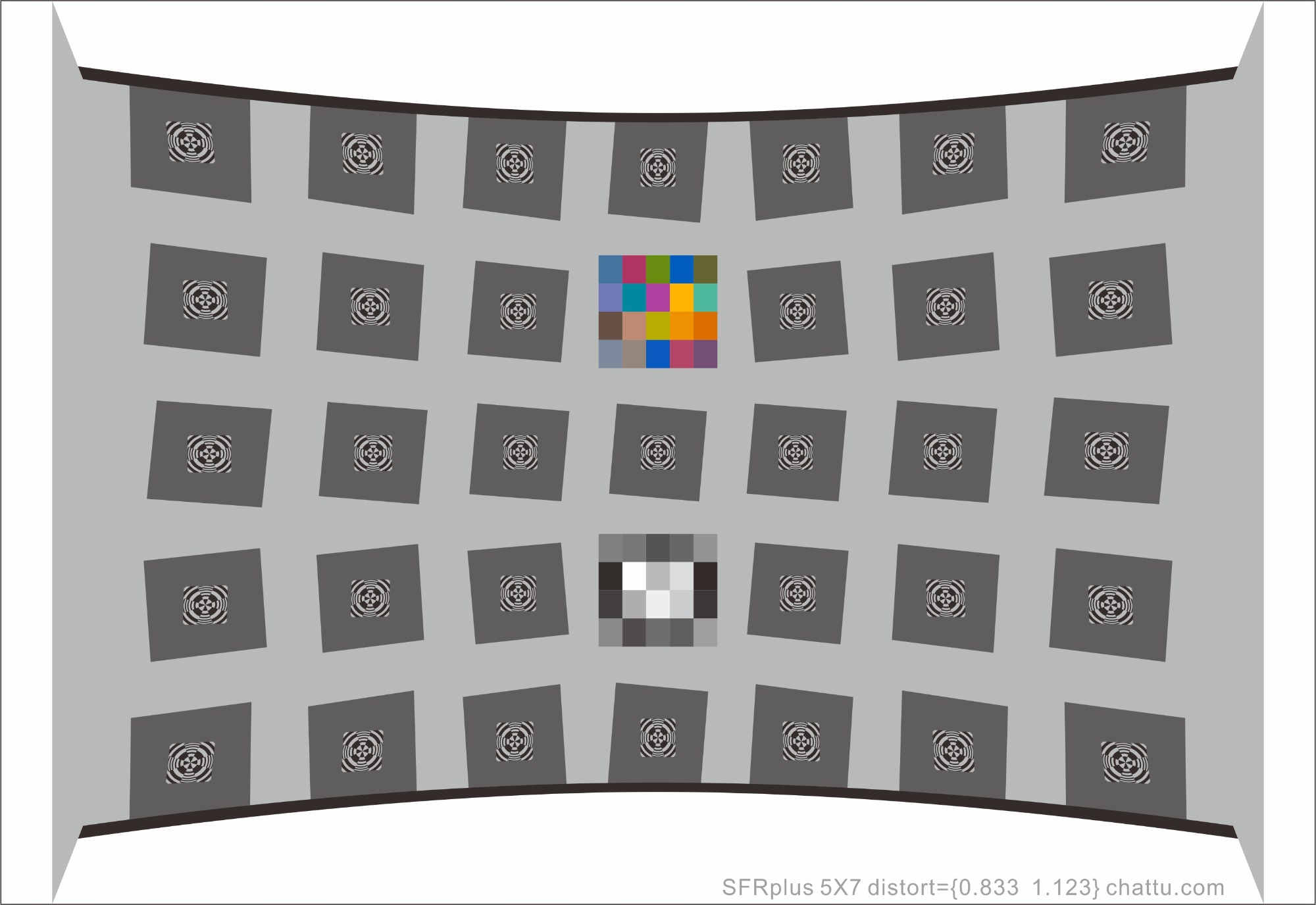 · 預(yù)畸變:大多數(shù)汽車(chē)攝像機(jī)模塊都存在明顯的魚(yú)眼畸變,這給圖像場(chǎng)的外部分析帶來(lái)了一定的困難。該圖表具有枕形預(yù)畸變,以近似補(bǔ)償汽車(chē)相機(jī)模塊的桶形畸變。在Imatest SFRplus設(shè)置窗口輸入恰圖相對(duì)應(yīng)的失真系數(shù)。