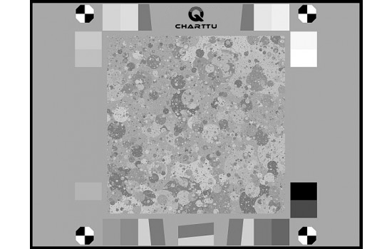 這款黑白枯葉恰圖是枯葉圖案的一個(gè)變體,用來測量紋理的清晰度。它比舊版圖表有幾個(gè)優(yōu)點(diǎn),包括幾乎完美的尺度不變性,這提高了測量的準(zhǔn)確性和魯棒性,以及圖表左側(cè)和右側(cè)的灰色區(qū)域,便于去除噪聲(使用一種技術(shù),從中央溢出硬幣區(qū)域的信號+噪聲功率譜密度中減去灰色斑塊噪聲功率譜密度)。