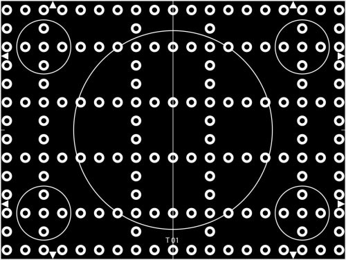 幾何測(cè)試圖 (黑色背景白色環(huán))T01B-Q Chart圖是為測(cè)量攝像頭和監(jiān)視器的幾何形狀而設(shè)計(jì)的。圓環(huán)配合后方的網(wǎng)格排列成理想的幾何圖形。中間圓形的圓心和后方網(wǎng)格的對(duì)角線交叉點(diǎn)位于同一位置。(黑色背景)特性類(lèi)型反射透射格式點(diǎn)擊規(guī)格表鏈接選擇或者定制縱橫比16:9;4:3