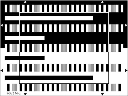 調(diào)制度評(píng)測(cè)Chart圖0.5/5 MHz型號(hào)T03-Q Chart圖是為評(píng)測(cè)電視攝像機(jī)元調(diào)制深度的均勻性而設(shè)計(jì)的。在兩線光柵行之間,黑色背景(上部)上設(shè)置兩個(gè)不同長(zhǎng)度的白條。白色背景(底部部分)上設(shè)置兩個(gè)不同長(zhǎng)度的黑條。特性類型反射透射格式點(diǎn)擊規(guī)格表鏈接選擇或按需求定制縱橫比4:3;16:9