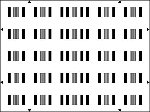 為測量電子相機的分辨率而設計的。測試圖由黑白線對組成,具有銳利的過渡。頻率分別為0.5和5 MHz的兩組條形圖分布在圖像區(qū)域上。