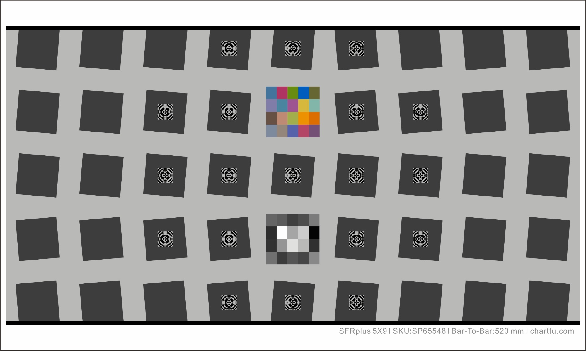 SFRplus測(cè)試圖可以與Imatest 3.2或更高版本的SFRplus模塊一起使用來(lái)測(cè)量MTF、橫向色差、失真、階調(diào)響應(yīng)和顏色精度。SFRplus模塊具有全自動(dòng)感應(yīng)區(qū)域檢測(cè)功能.與ISO 12233圖表等常用圖表相比,SFRplus圖表具有顯著的優(yōu)勢(shì),包括: