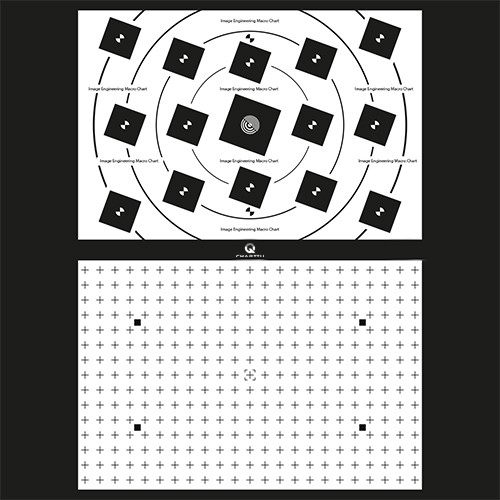 用于分析在微距模式下單反相機(jī)系統(tǒng)以及小型相機(jī)的微距鏡頭的分辨率和畸變.該圖卡主要是由兩部分組成:1斜邊,主要是用于測試分辨率,斜邊的傾斜度5°。2是十字的畸變圖卡,用于測試畸變,背景是白色,十字是黑色,測試鏡頭畸變和色彩。